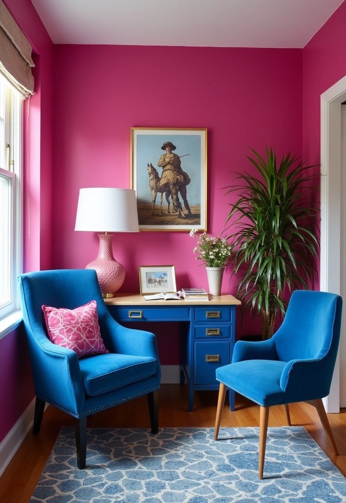 Imagine fuchsia walls with cobalt blue furnishings—it’s a true statement!
