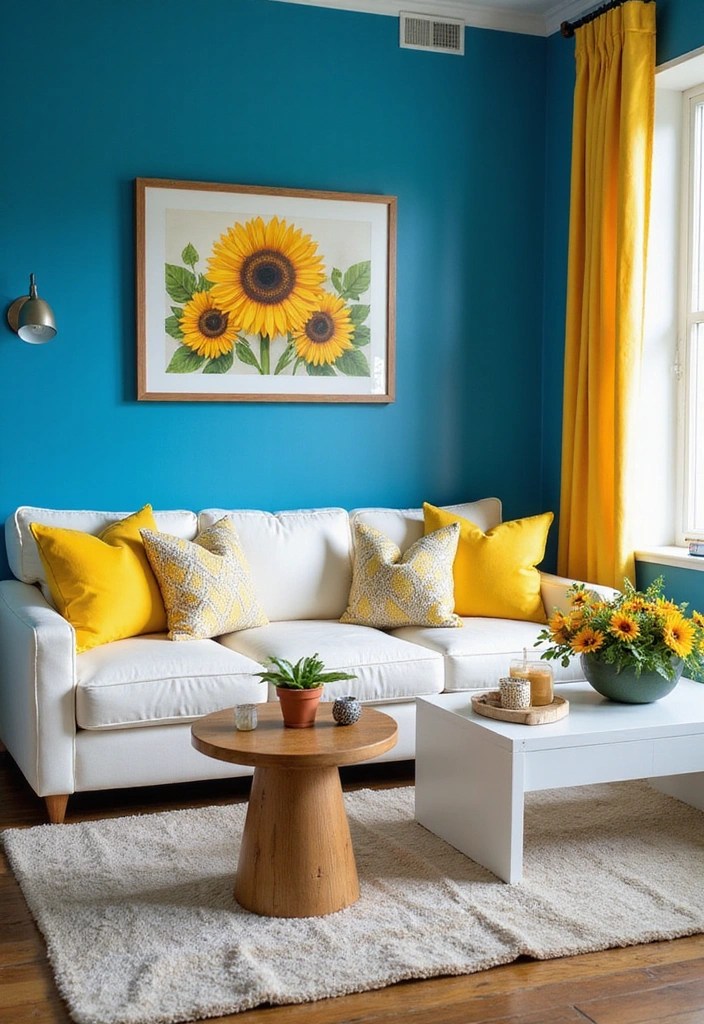 Imagine electric blue walls paired with sunflower yellow accents—think throw pillows, artwork, or even a cozy chair!