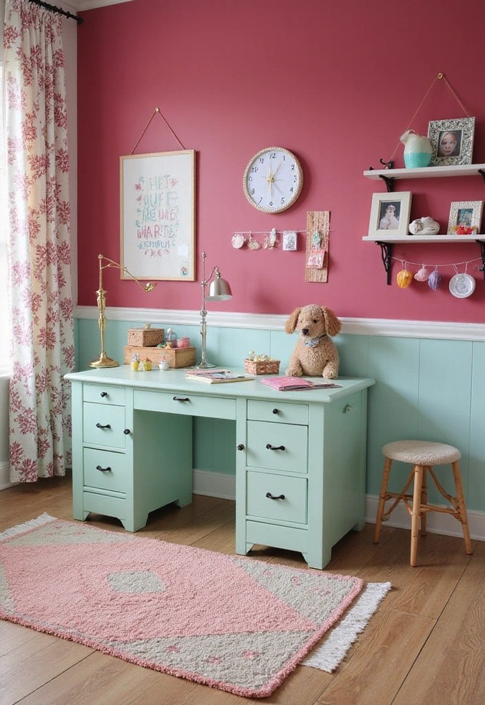 Picture raspberry accent walls with minty green furniture or decor, creating a lively and spirited environment!
