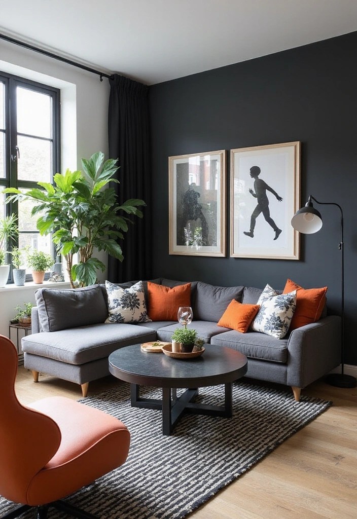Picture a charcoal grey sofa with mustard yellow blankets or cushions—it’s bold yet cozy!