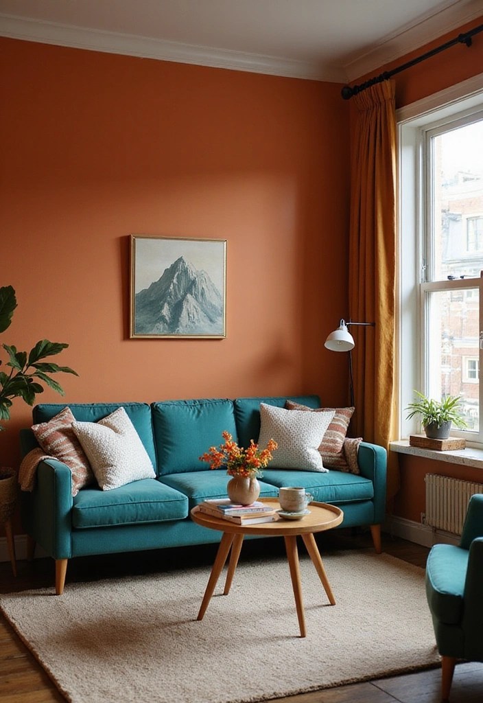 Imagine a burnt orange accent wall paired with deep teal furniture or decor.