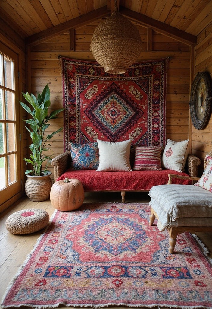 Colorful rugs can bring the boho vibe home, making your shed feel warm and inviting.