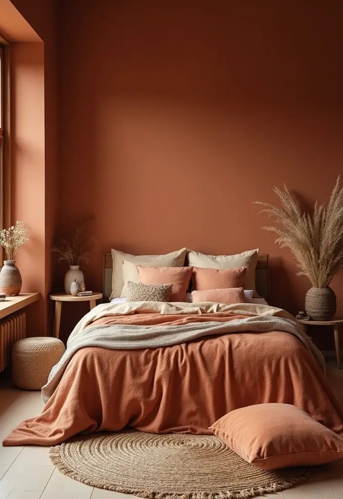 If you want a calm, nature-inspired corner in your shed, start with earthy terracotta and sage green. This boho color palette blends warm clay tones with soft greens. It feels grounded yet airy, a perfect match for a she shed tucked among plants.