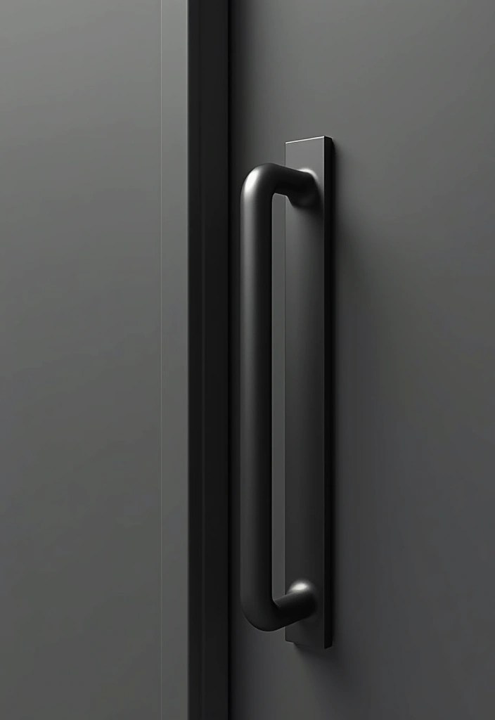 Adding a simple vertical handle can enhance the door’s sleek design while still being functional.